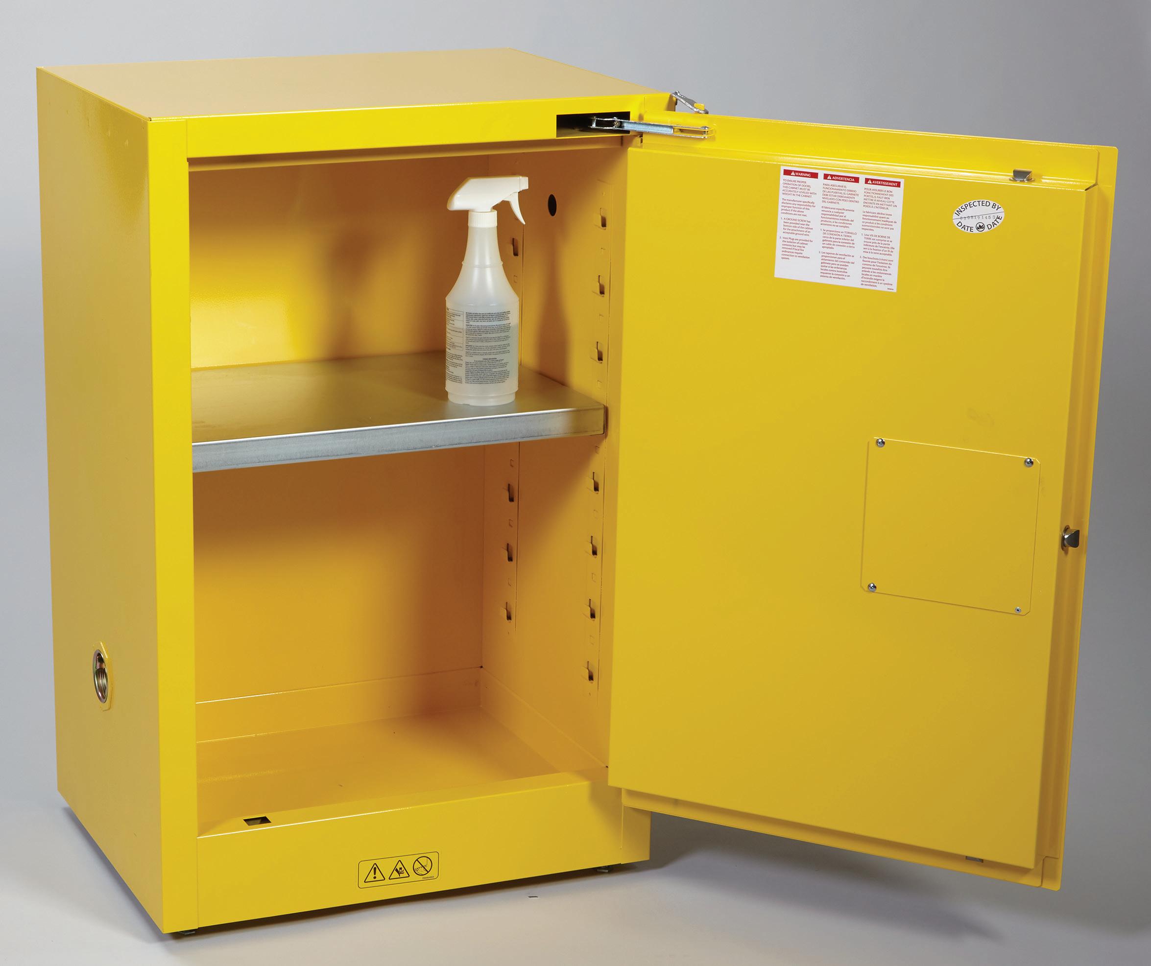 Store up them flammables safe in a big yeller Countertop Safety Cabinet. page 604