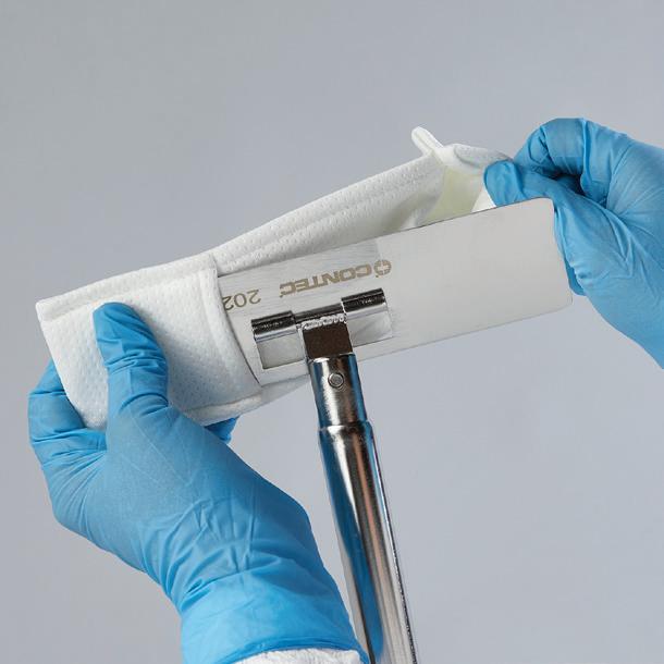 Cost effective - Frame allows for hands-free alternation of the dual-sided sterile mopheads to cover twice the surface area using a single mop.