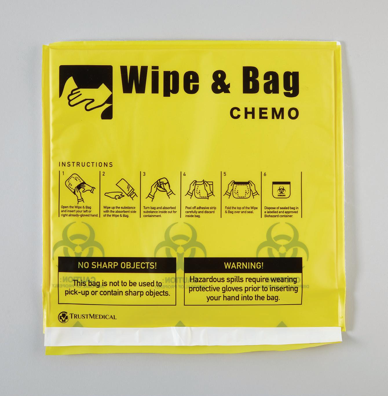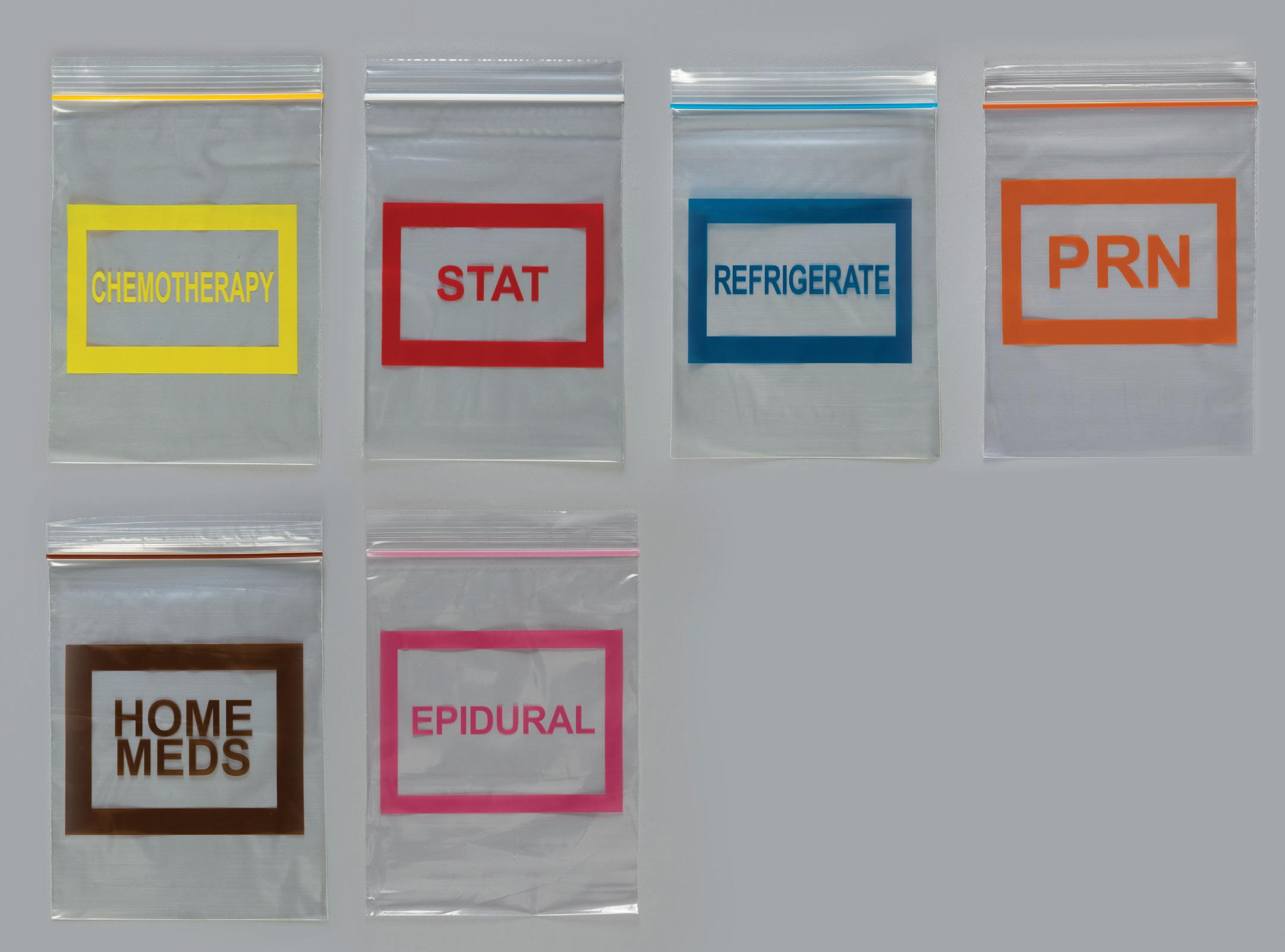 Chemo Drug Recognition - Clear bags with Black text on a Yellow block alert workers to special instructions when working with hazardous drugs.