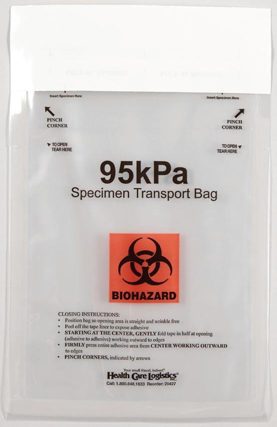 Leakproof - Strong adhesive closure and continuous seal is ideal for specimen transport.