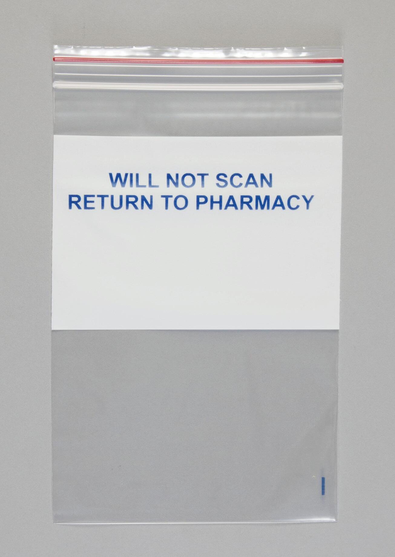 Easy to Identify - Clear security bag features an Orange block with preprinted warnings to report to the pharmacy.