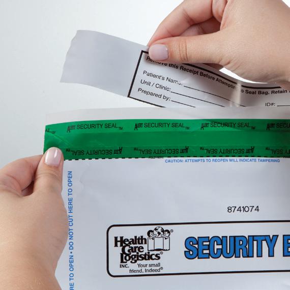 Safe Drug Delivery - Heavy-duty, Clear-vinyl, reusable bag protects and secures contents during transport using a tamper-evident seal that clicks into the locking chamber. The seal is destroyed upon removal and cannot be reapplied.