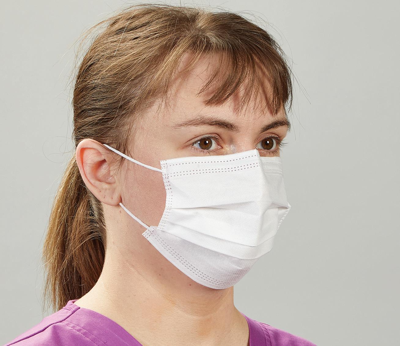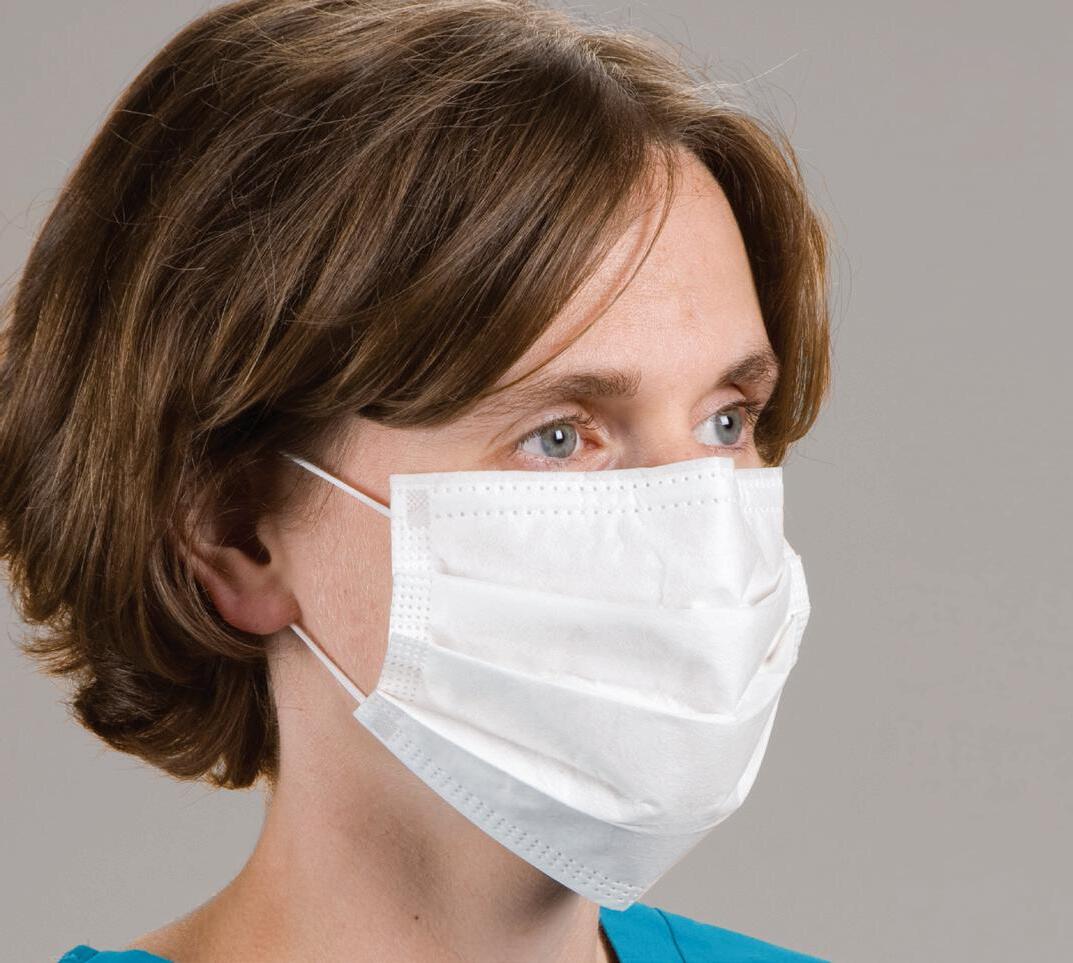 Construction - Pleated mask with elastic ear loops protects user from moderate fluid exposure.