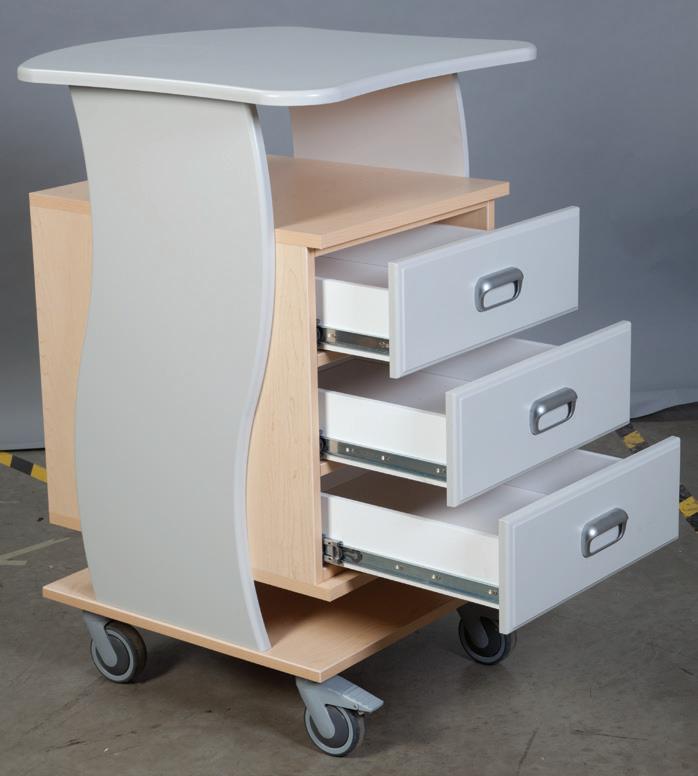 The customer requested a mobile table unit and asked for a lip on the 3 bottom shelves only for quicker cleaning on the top.