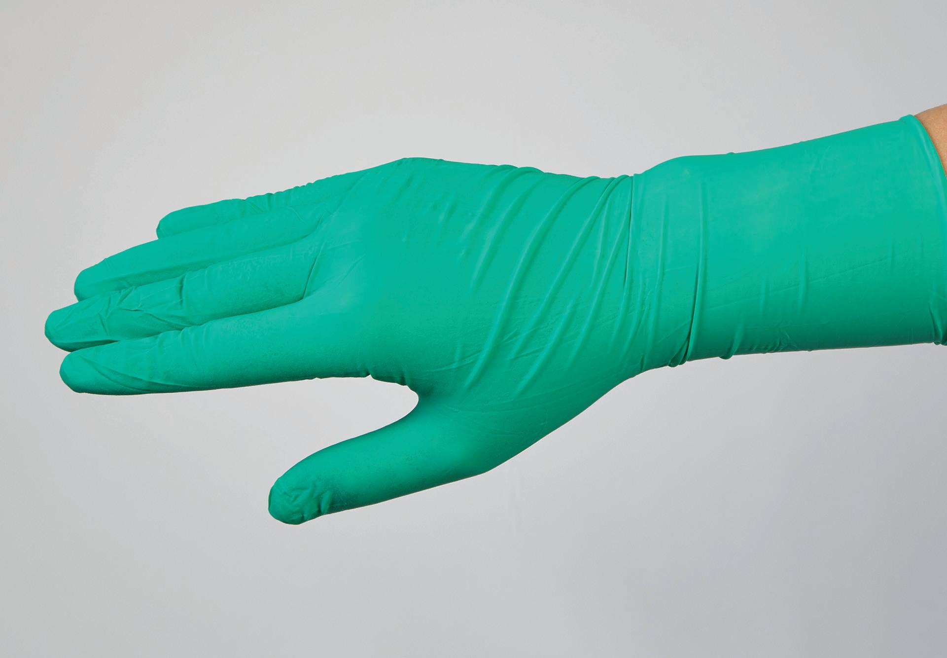 Breach-Detection - Emerald green glove reveals tears and punctures and is ideal for a double-donning system.