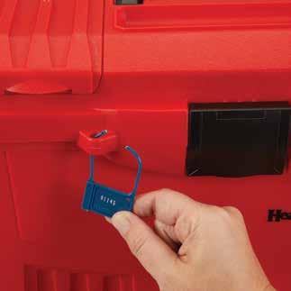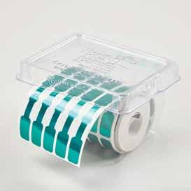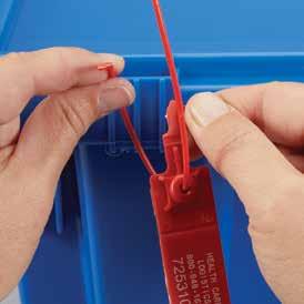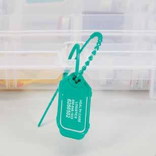 Unique hinge design causes a spring-back motion if the seal is not properly applied. each pack is consecutively numbered and The ring keeps the seals in consecutive order.