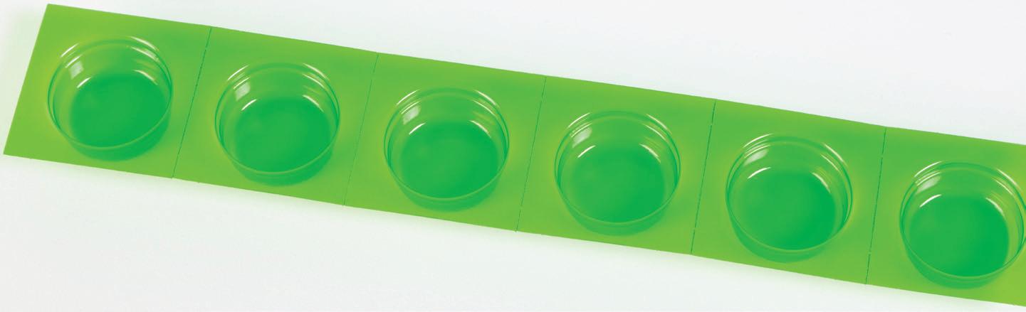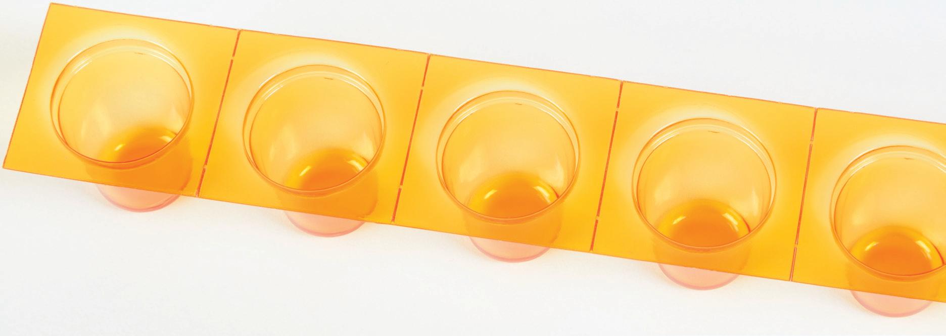 Color Options - Amber, Blue and Green Packaged - 24 blisters per sheet; 100 sheets per package; 2,400 blisters total