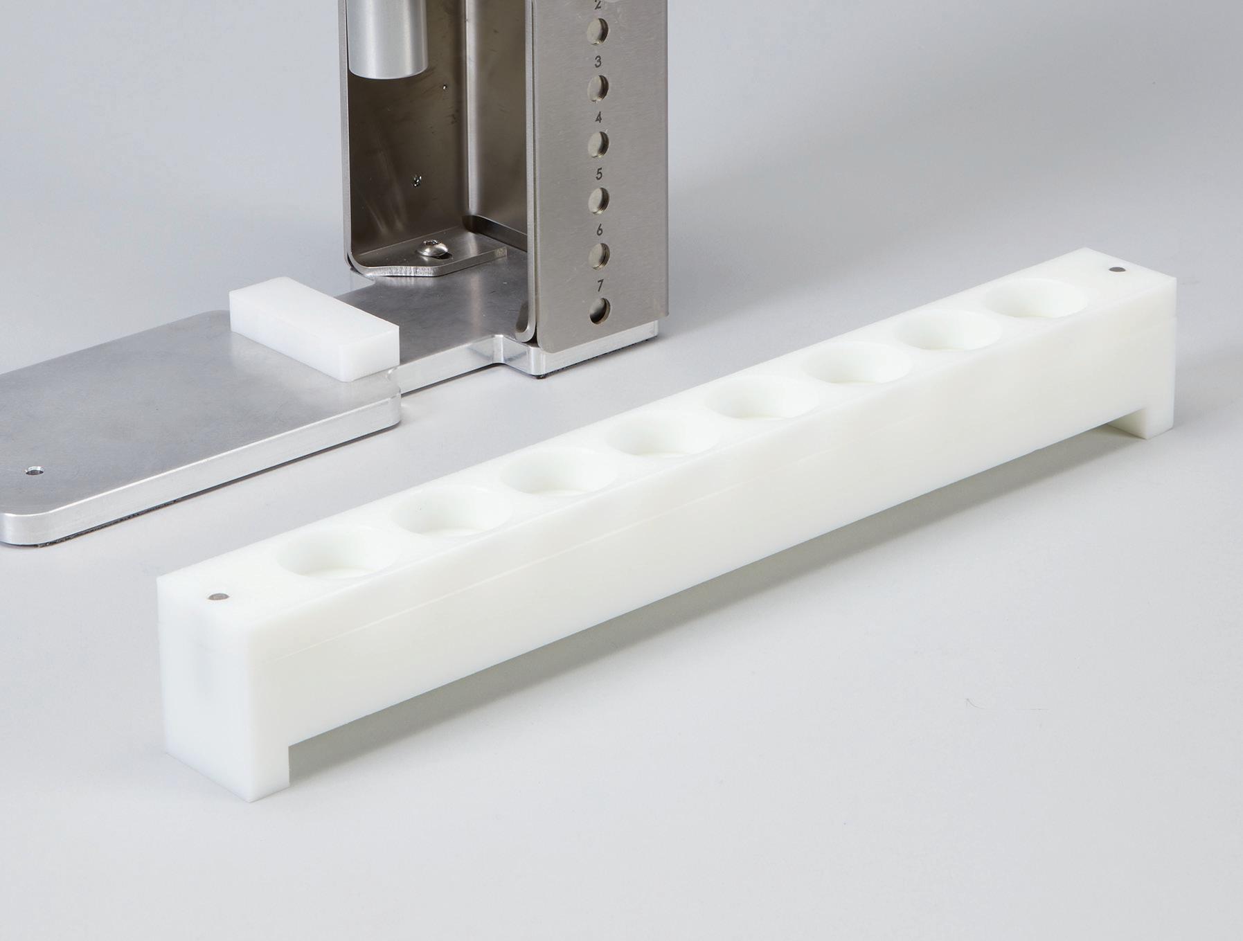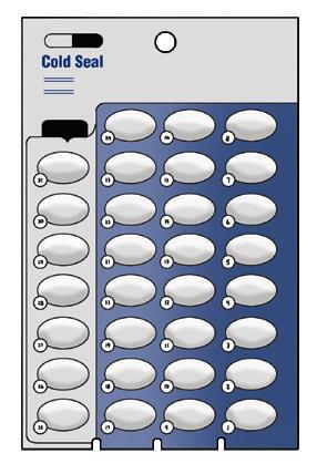 Efficient Design - This medium-cavity, 16-blister block allows an entire grid of labels (6126) to be applied simultaneously.