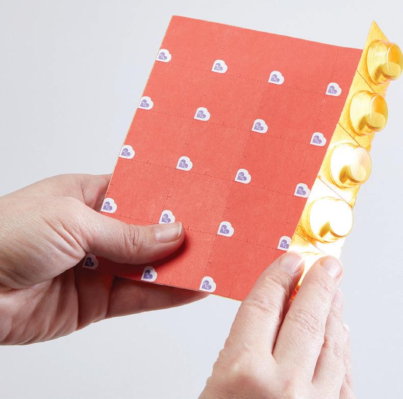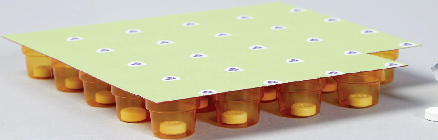 Neat Application - Foil labels are paper topped. No adhesive is applied over the medication cavity or lift-open tabs.