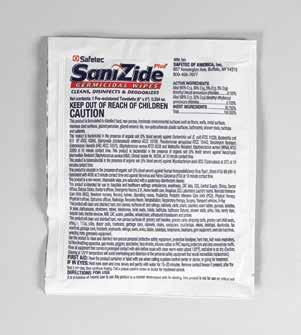 LOOK FOR ü MADE IN THE USA & ü HCL® EXCLUSIVE PRODUCTS. USP REFERENCE GUIDE 28 Wipe USA HCL® Item # Description Dimensions Qty. ü ü A 20564-31 SaniZide Pro 1® Tigger Spray, 32oz. 6 ü ü B 20565-31 SaniZide Pro 1® Wipes, Individually Wrapped 71⁄2 x 8 1 ü ü C 20566-31 SaniZide Pro 1® Wipes, Canister 6 x 63⁄4 12 www.P65Warnings.ca.gov WARNING: Cancer A 1MINUTE KILL B C ALL ITEMS SHIP GROUND ONLY