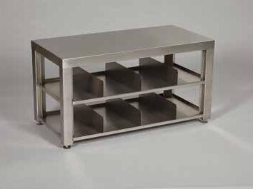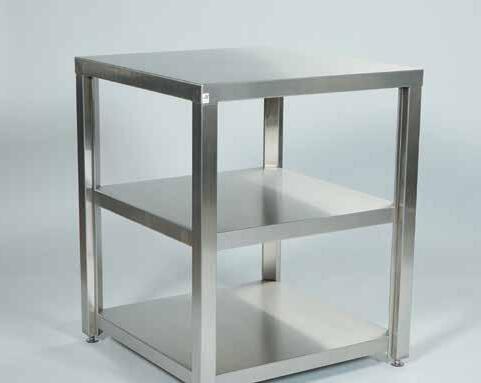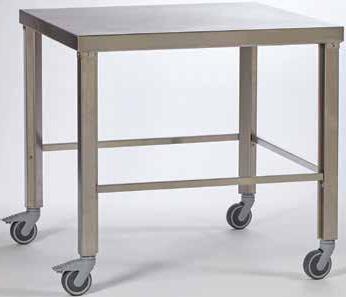 Stainless steel frame on casters allows for easy maneuverability throughout the facility.