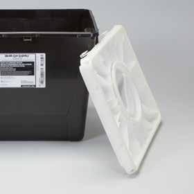 Hermetic permanent seal keeps contents secure and reduces the risk for spills during transport. Uses a glue bead technology that permanently adheres the lid to the container and is superior to traditional rubber gaskets. 16 point positive locking lid system offers audible clicks to confirm the lid is locked.