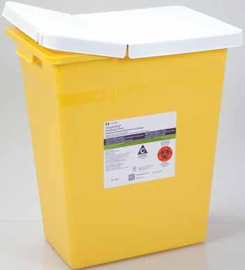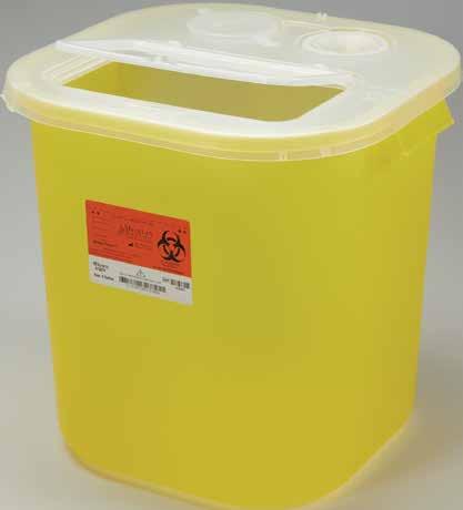 Absorbent pad in the bottom of the container helps absorb liquids. Includes a tamper-evident label to deter tampering during final disposal..