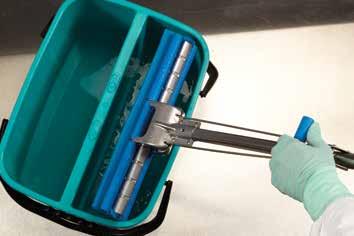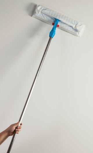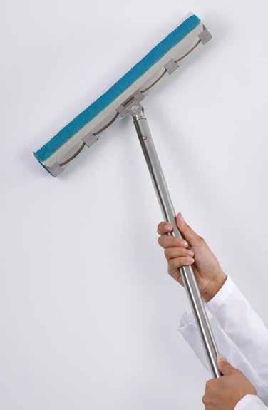 Allows for quick and effective cleaning of walls and ceilings in critical environments. Curved design helps maintain surface contact. Self-wringing design renders manual wringing obsolete, saving time and reducing strain.
