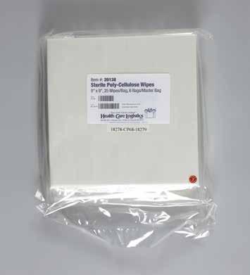 GoHCL.com • hcl@GoHCL.com • Call: 1.800.848.1633 • Fax: 1.800.447.2923 FROM HEALTH CARE LOGISTICS® 21 B A WIpe USA HCL® Item # Description Dimensions Qty. ü ü 20140 Health Care Logistics® Presaturated Cleanroom Wipes, 70% IPA, Non-Sterile 9 x 9 1 ü ü 20140-31 Health Care Logistics® Presaturated Cleanroom Wipes, 70% IPA, Non-Sterile, case 9 x 9 12 ü ü A 20141 Sterile Health Care Logistics® Presaturated Cleanroom Wipes, 70% IPA 9 x 12 1 ü ü 20141-31 Sterile Health Care Logistics® Presaturated Cleanroom Wipes, 70% IPA, case 9 x 12 40 ü ü B 20142 Sterile Health Care Logistics® Presaturated Polypropylene Wipes, 70% IPA 9 x 11 1 ü ü 20142-31 Sterile Health Care Logistics® Presaturated Polypropylene Wipes, 70% IPA, case 9 x 11 40 STERILE ITEMS A & B look for Helen & Hector on the label of our exclusive wipes! ALL ITEMS SHIP GROUND ONLY