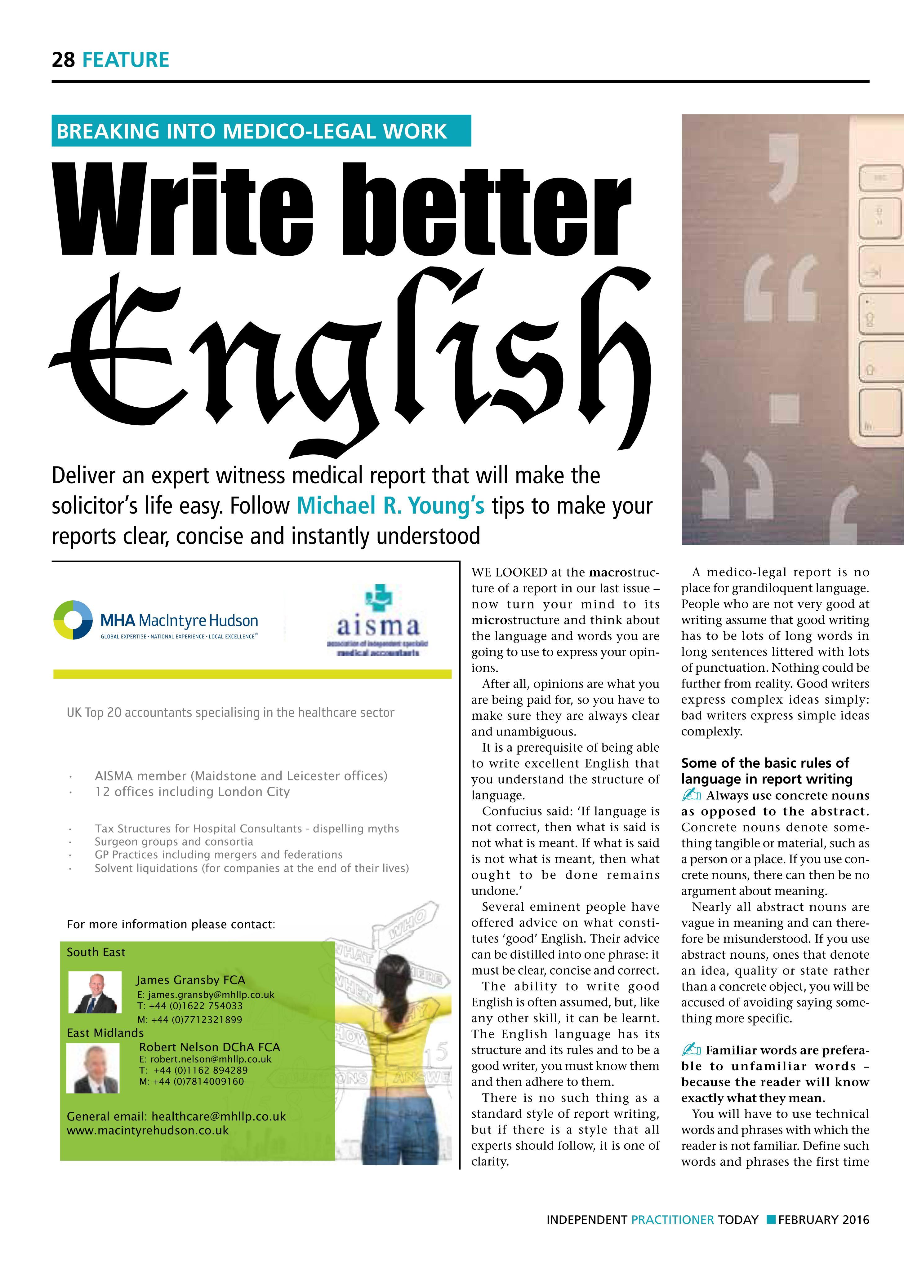 Plus all our regular features: accountant’s Clinic, Breaking Into Medico-Legal Work, Starting a Private Practice