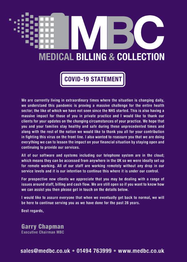 Within days of the Chancellor sitting down, we were all hit with the ramifications of Covid19. The virus has, of course, changed the lives of everyone as it swiftly took its opportunities. Extraordinary demands have been placed on doctors and their teams and, for many private practitioners, there have been mounting business implications – such as their own cash flow or running a service without the necessary staff.