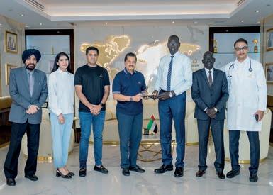 Dr. Chan Deng, General Surgeon at Nile Specialist Hospital, South Sudan, and Mr. Ring Riak, Diplomat from the South Sudan Embassy, had the privilege of meeting Dr. Thumbay Moideen, Founder President of the Thumbay Group.
