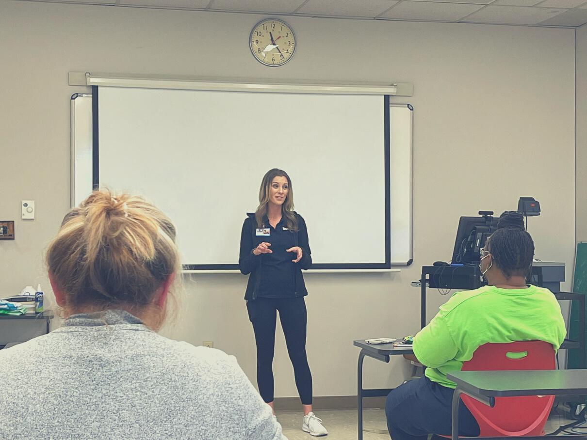 Faculty and staff at South Arkansas Community College in El Dorado, Arkansas conducted their annual professional development days on campus in August. HealthWorks facilitated a highly requested session about stress management and exercises for sitting all day. As with many careers, college faculty and staff members tend to engage in large amounts of occupational sitting. This is especially true since the number of online courses offered have increased over the last decade. During this interactive session, Fitness Director Britany Thomas went through a curriculum that could aid with work related stress and fatigue.