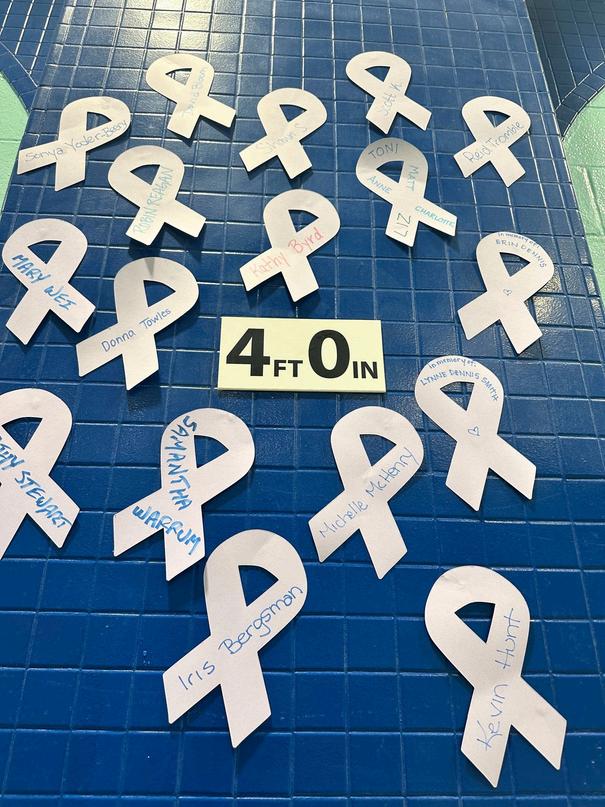 In addition to fundraising success, the event saw strong participation from swimmers, with three individuals Melanie Butz, Debi Kinnamon, and Kevin McCluskey completing the demanding 10K swim. Support from fellow swimmers helped maintain high energy in the pool throughout the event. Indianapolis Healthplex played a crucial role in promoting and supporting the Aquathon, incorporating creative engagement strategies such as a live broadcast of the IU/Purdue basketball game with a donation competition, a memory ribbon tribute, and ongoing event promotion through signage, newsletters, and donation collections at the front desk.
