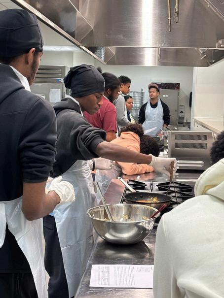 In addition to boxing and strength conditioning, the teens also participate in a monthly cooking class provided by the Teaching Kitchen at SBH. During these classes, they learn about healthy eating alternatives from licensed dietitians and gain hands-on experience in preparing their own nutritiousmeals.