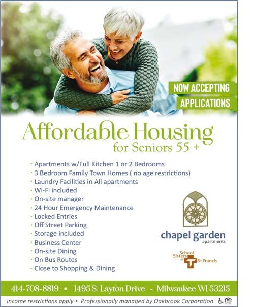Call 414-292-0400 or email wauwatosasales@oakparkplace.com. BRENWOOD PARK 9501 W. Loomis Rd. | Franklin WI 53132 Heat and hot water is included in your r ent, along with many fun and unique acti vities, On-site management of fice and 24/7 maintenance. Call Us To Schedule A Tour ASAP! 414-427-8499 Brenwood Park Senior Living August 2023 MHL 4