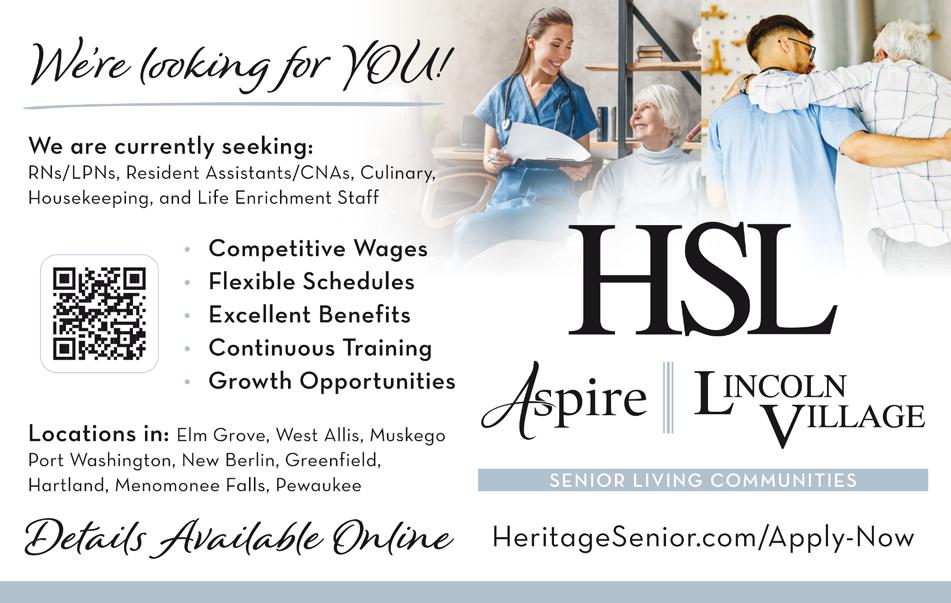Health Insurance Life Insurance Annuities LongTerm Care Insurance Auto Homeowners Immediate SR22 Filings Free Quotes 7421 W. Becher St. West Allis, WI We are not limited to representing one company, so we can give you unbiased advice. 414-545-7878 1-800-924-4061 www.AlliedSeniorServices.com Be Confident in Your Coverage. Convenient Downtown Location Free Parking- secure Entr y System Beauty Salon-Community Room Social Activities QUALITY SUBSIDIZED SENIOR HOUSING Senior Living At Its Finest! 801 Nor th East Ave Waukesha, WI 53186 EAST TERRACE APARTMENTS of Waukesha 262-544-9757 or 800-944-4866 ext. 1122 44 MHL May 2023