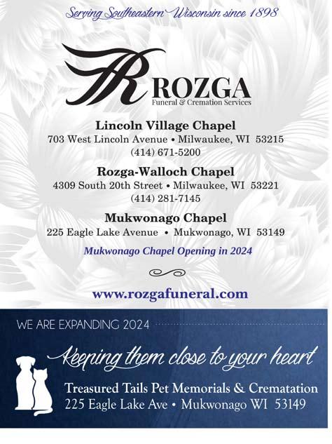Peace of Mind Services Title 19&Pre- Arrangements Simple Cremation $595.00 Traditional Funerals $1,395.00 (Excluding Cremation Permit& Fee) at your Church or Cemetery Chapel of your choice Call for more details 414.453.1562 SERVING ALL OF WISCONSIN April 2024 MHL 47