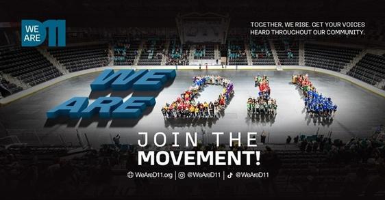 Beginning February 2nd, students will have the opportunity to step into the spotlight through the WeAreD11 Student Contest Student teams are invited to submit short videos showcasing what makes their D11 experience meaningful whether that ’s learning, performing, competing, leading, creating, or simply sharing their school pride. Selected submissions will be featured on weared11 .org, amplif ying student voices across the district and beyond and winning teams and schools will be afforded a choice of prizes