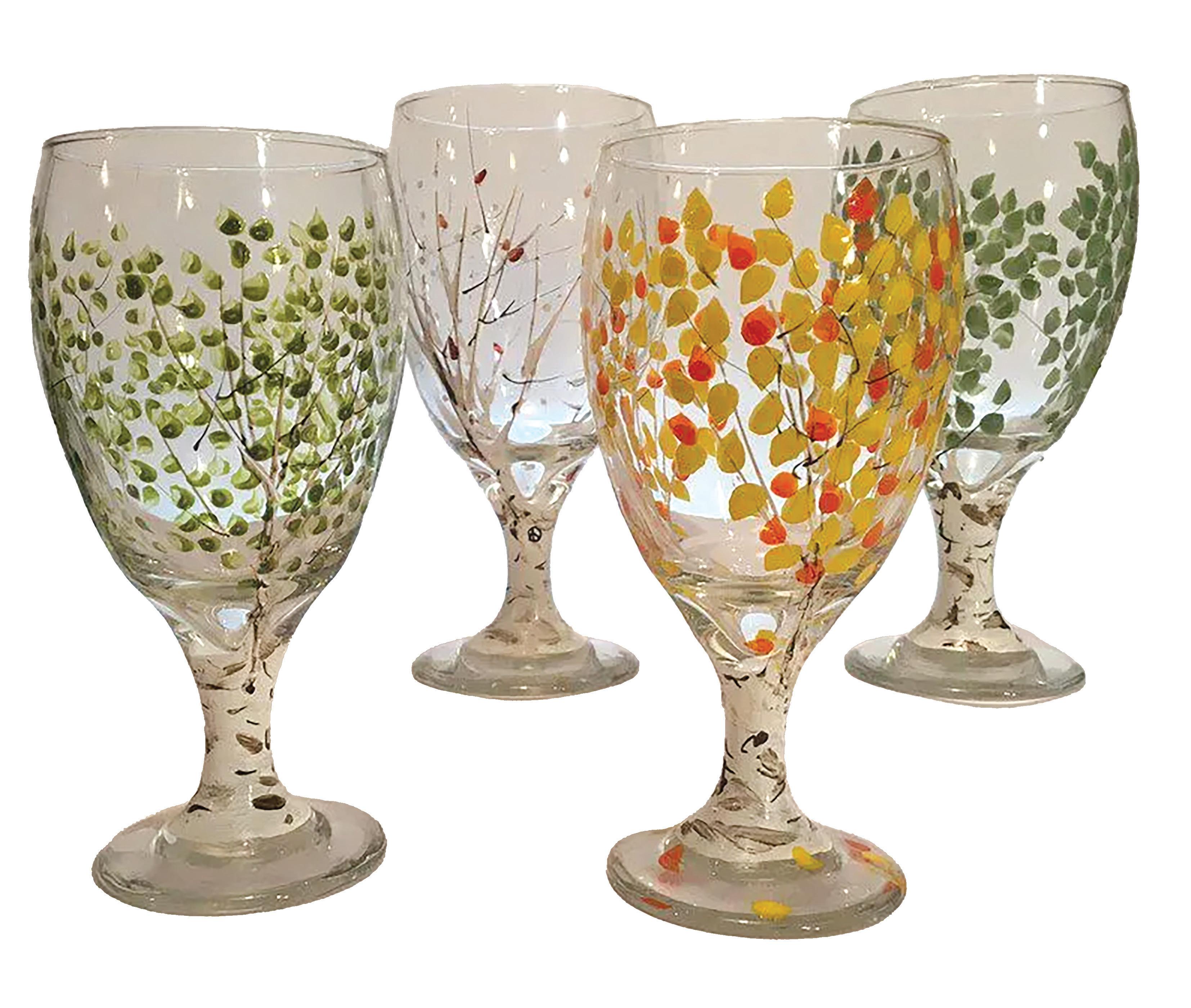 Hand-painted Goblet Glasses – Aspen Trees in Fall, Winter, Summer and Spring $29.95 – $110.00 giftsfromcolorado.com