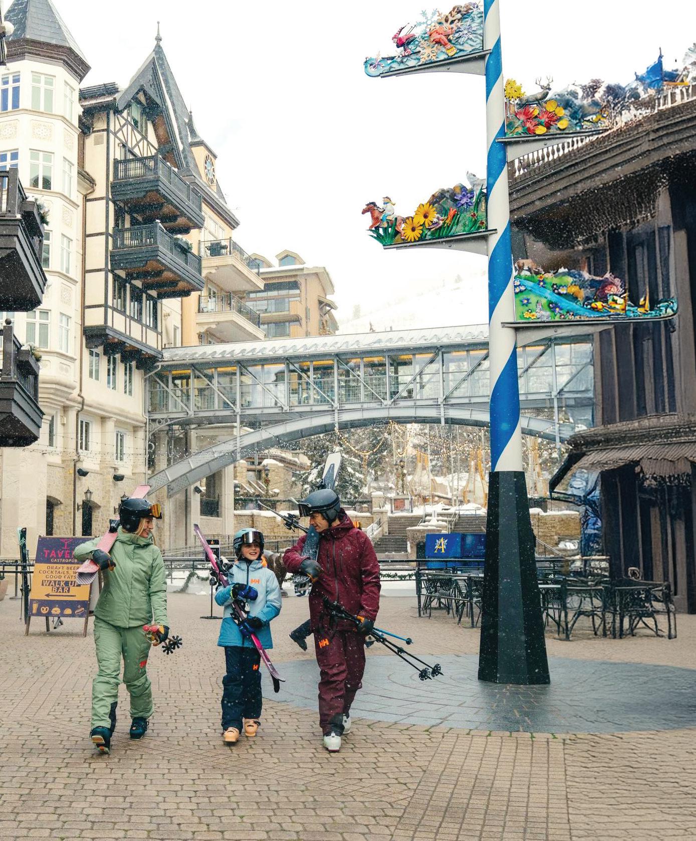 Lionshead Village combines pedestrianfriendly charm with upscale boutiques, outdoor gear shops, cozy cafes and easy gondola access, making it a central hub for shopping, dining and mountain views year-round.