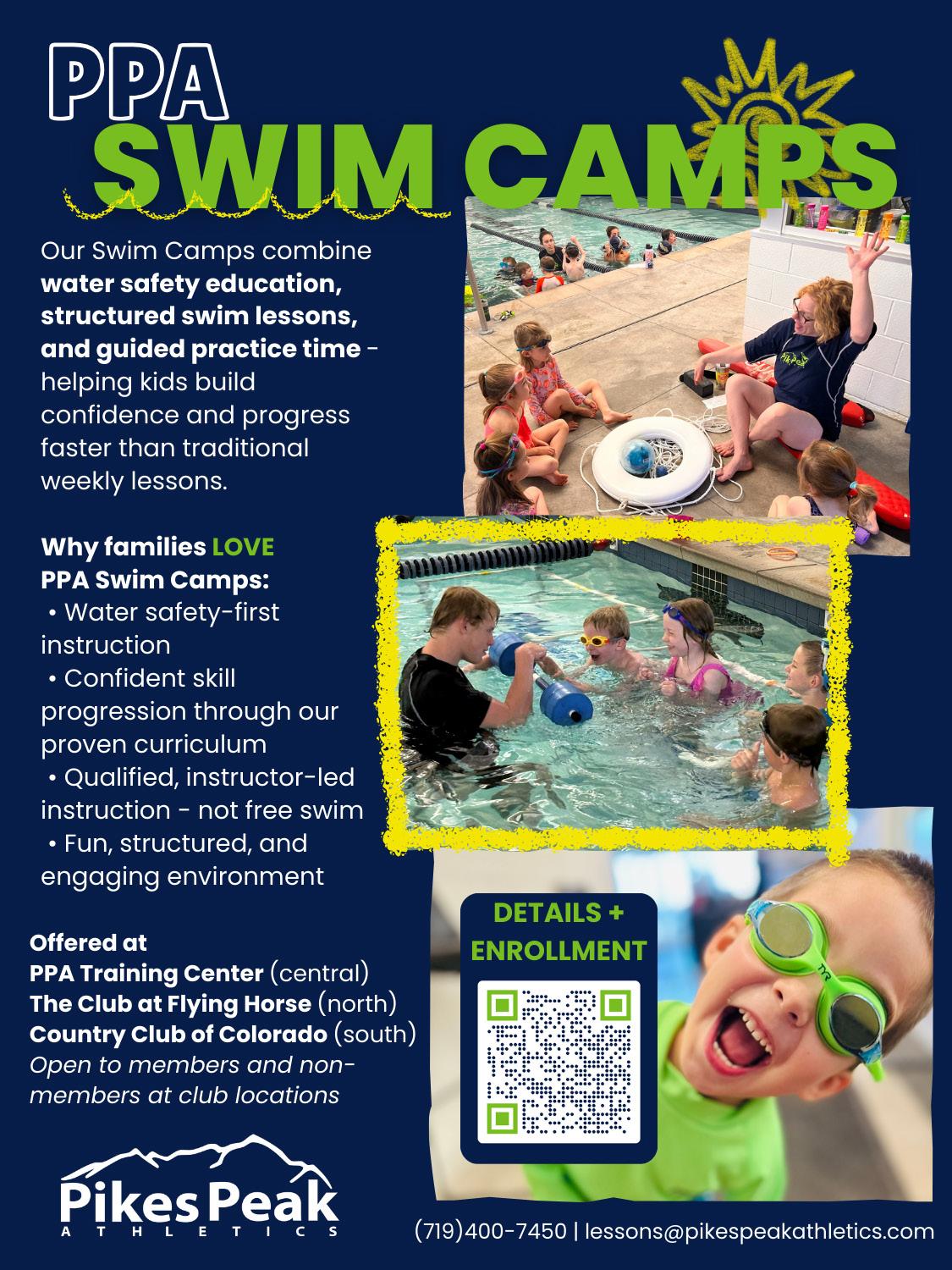 Swim Camps are the perfect way to boost swim skills through stroke development, water safety competencies and a wide range of swimming activities and games. Every day, campers engage in two 30-minute swim lessons, a 20-minute water safety lesson and in- and activities and games in and out of the water. Geared toward ages 4-12, campers are grouped by skill level and age. Camp dates and registration info will be available online.