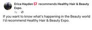 The Healthy Hair & Beauty Expo was launched on April 6, 2019 In 2029 we hosted four events: April, July, October & December #HHBE events were a hit and we were dubbed ‘the event of launches’ This ignited our annual ‘#HHBE Awards’