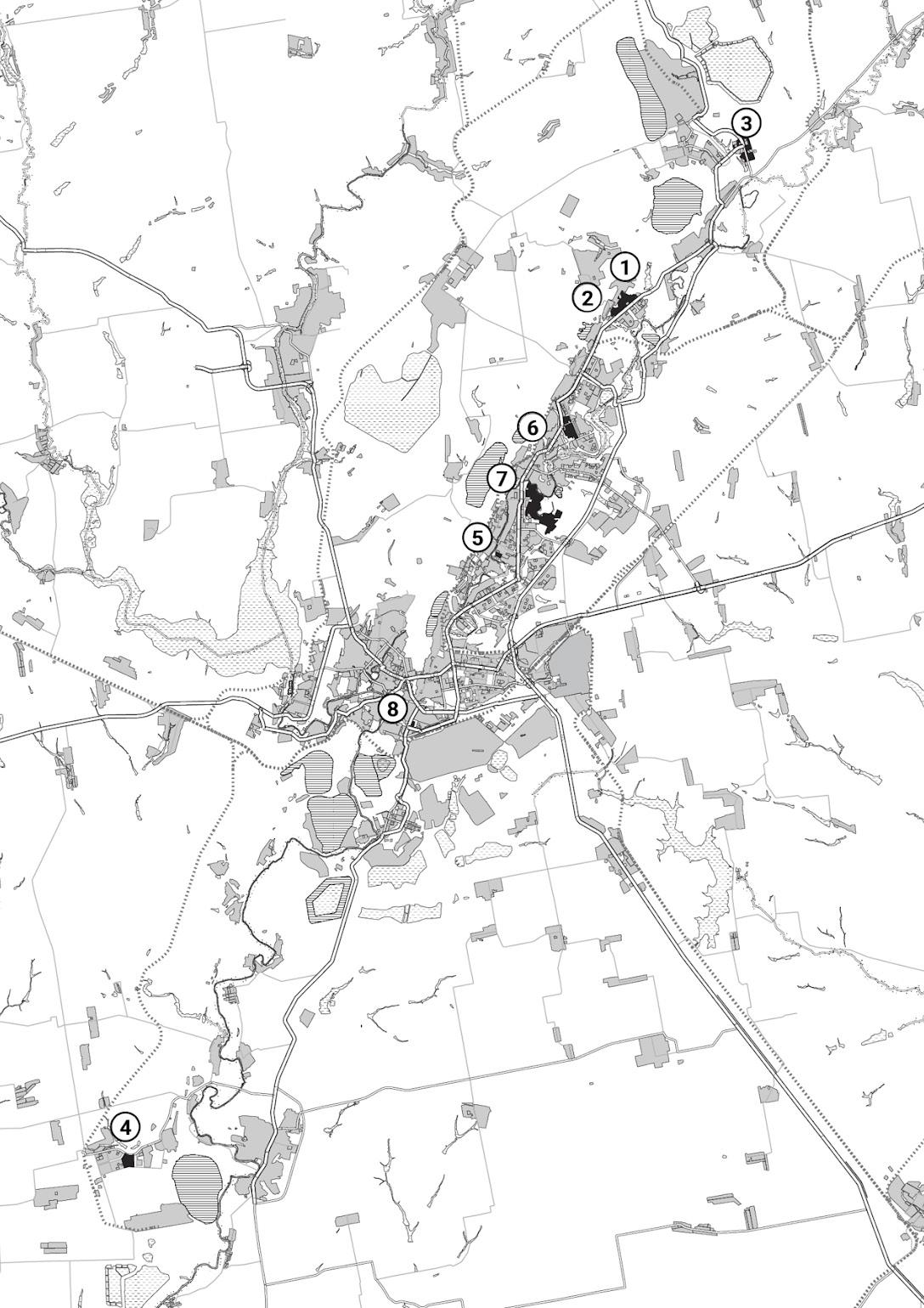 Potential sites are ordered by their existing condition; labeled 1-8 from least damage/most easily used to extreme damage/needing to be demolished. Sites 1-3 could be adaptively reused without having to demolish much of the existing structure. They are generally sound with water damage to interiors. Sites 4-6 need significant repairs and potentially alterations in order to make the buildings livable. Sites 7-8 are in disrepair and are recommended for demolition.