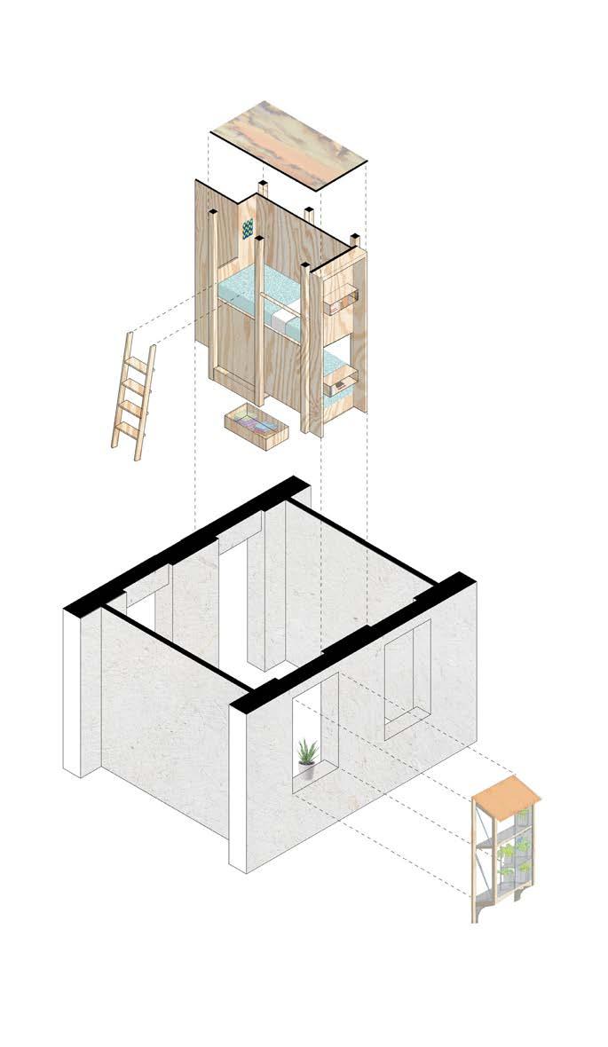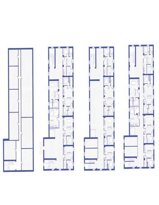 We looked at ways to reuse abandoned buildings in order to house as many people in need of homes as possible while creating environments that don’t just satisfy the basic requirements for a shelter but actually can become places for people to live and thrive. The studio researched the healthiest possible available/