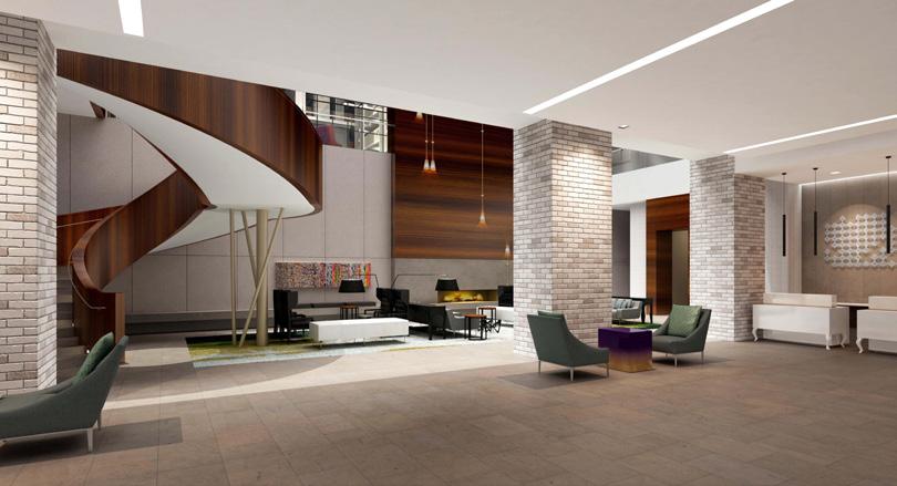 Enter the main hotel lobby to discover an atmosphere representative of the Short North Arts District: artsy, fashionable and beautifully unique. A spiral staircase leads to the atrium level which houses dining and fitness options. This incredible atrium features a spectacular 15,000 SF skylight, designed to provide a unique indoor/outdoor experience.