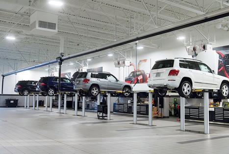 Mercedes-Benz of Fort Mitchell is one of the greenest dealerships in the country. The dealership has implemented numerous measures to minimize its impact on the environment. It is lit by 100-percent LED technology, providing a 75-percent savings in energy and 10 years of worry-free maintenance. The dealership has radiant floor heating and uses water- and airpressure jacks instead of hydraulic-oil jacks. The oil-change bay is specially lined with fiberglass to prevent oil from seeping into the water table.