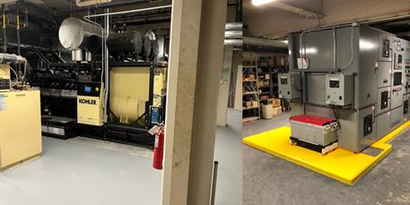 The engines were installed in an existing space requiring logistical planning and sequencing. The temporary generator system that integrated into permanent systems maintained backup power to the facility throughout the progression of construction, protecting critical operations in the event of a normal power outage. Extensive coordination and preparation allowed for proper testing and commissioning of the new generator plant to ensure full operation and backup of the facility while also providing temporary generator backup support to the hospital during the same timeframe.
