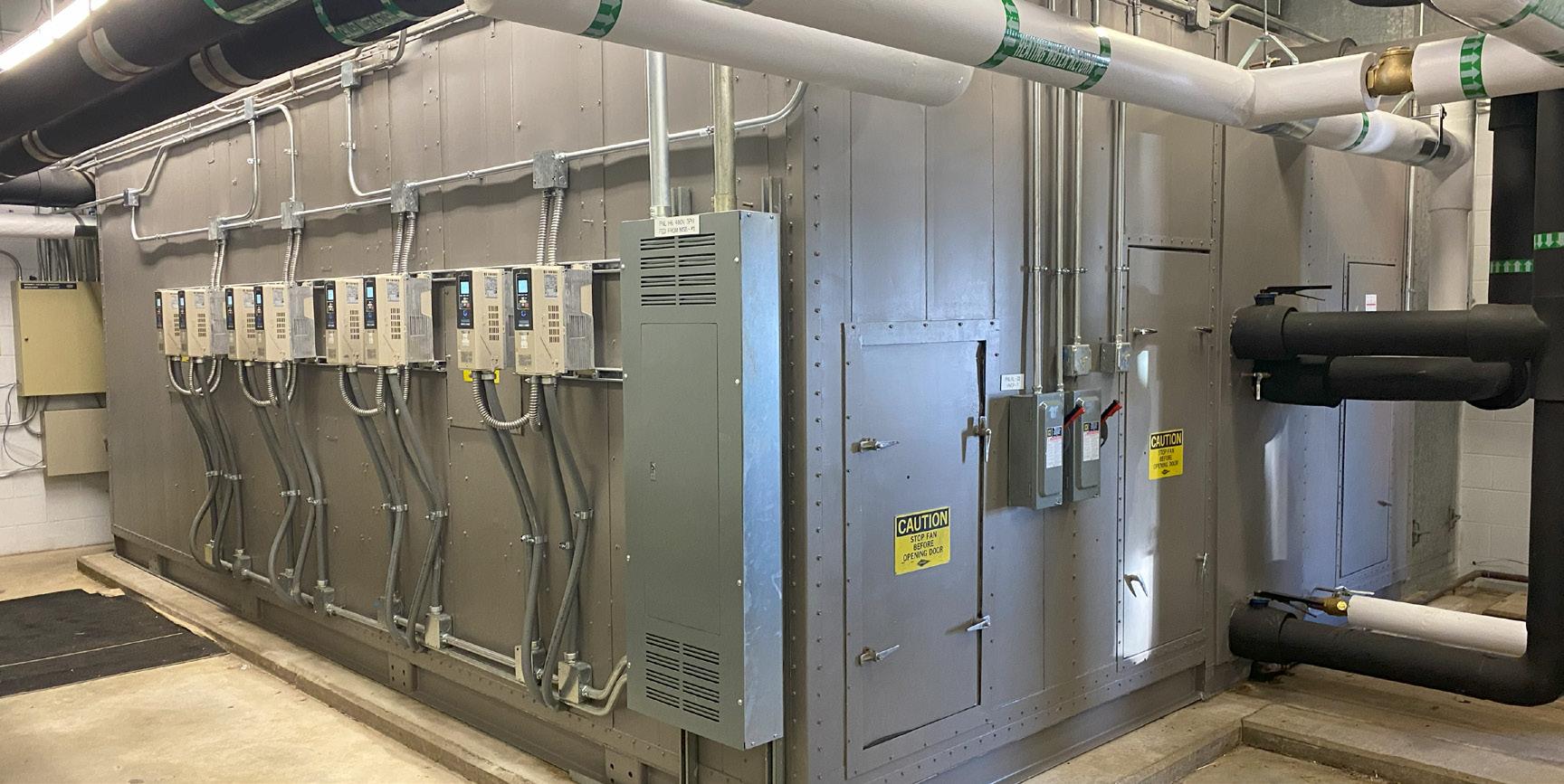 HEAPY Solutions removed the existing air handling unit 8 and 11 and replaced them with a new larger air handling unit 8 that serves both areas. Work also included removal of dual duct boxes and replacement with a VAV box with hot water reheat. Work included all material, installation, management, permitting, programming, and testing for an operational system.