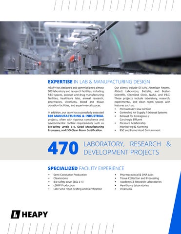 HEAPY has designed and commissioned almost 500 laboratory and research facilities, including R&D spaces, product and drug manufacturing facilities, healthcare labs, animal research, pharmacies, vivariums, blood and tissue donation facilities, and experimental spaces.