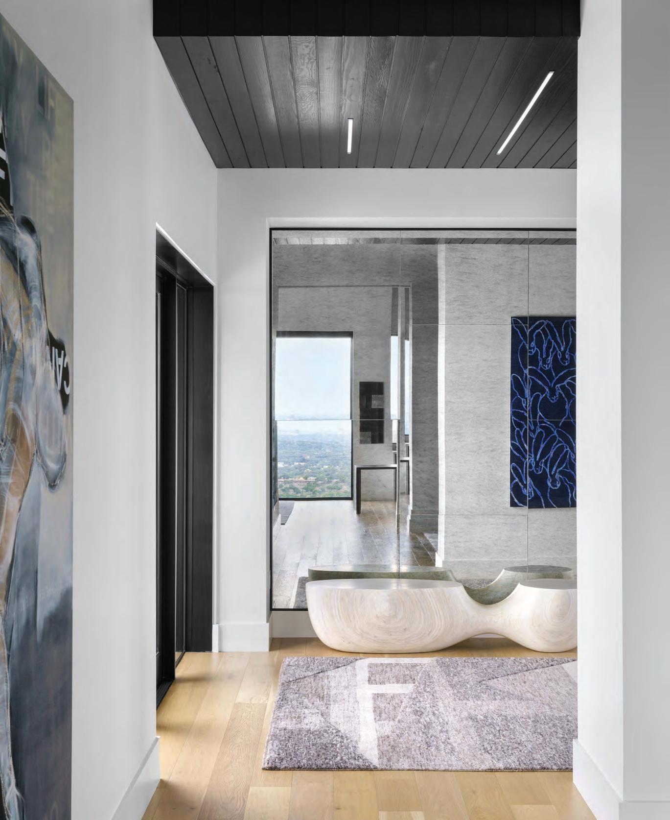 When construction finished this year, 44 East became the latest—and tallest—high rise to join Rainey Street Historic District’s expanding residential corridor. Thanks to its height and prime location, the 49-story condo building offers residents breathtaking views of the lake, bridges, downtown, and more. And while its height is noteworthy, its breezy entryway volume, Hill Country–inspired circular lounging pool, and two amenity levels make it stand out.