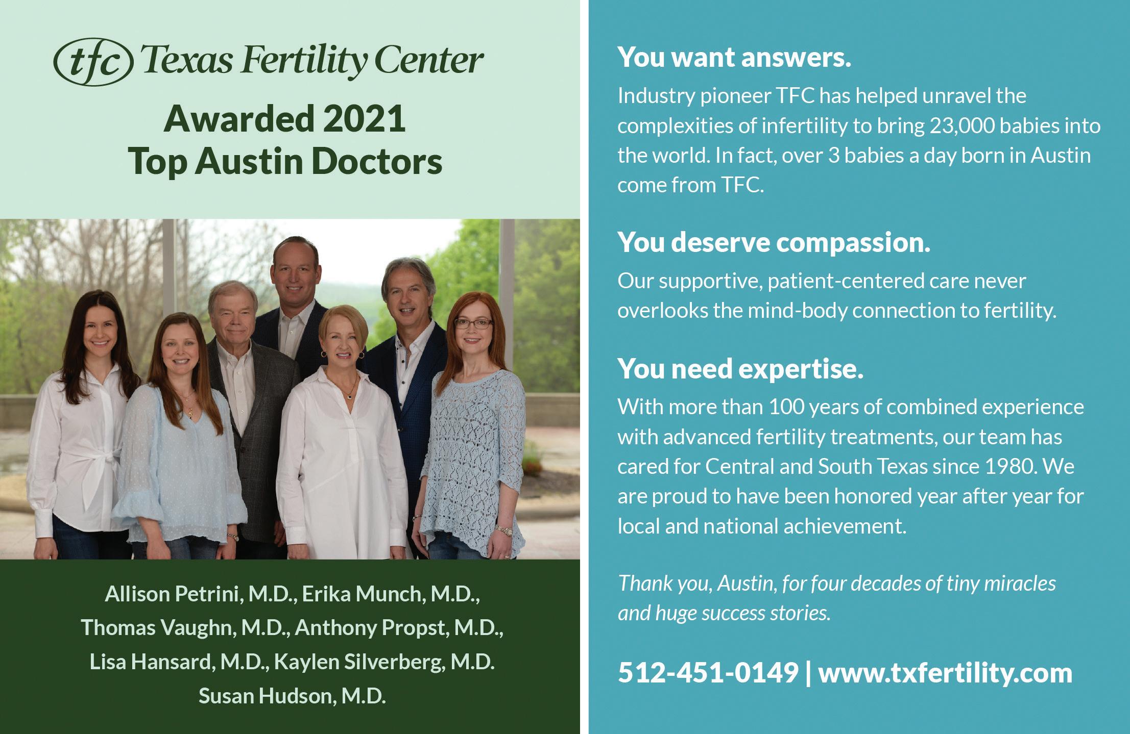 Using an online survey, Austin Monthly solicited peer nominations from physicians in Travis, Hays, and Williamson counties, asking them to nominate up to three doctors per practice area who they would trust with the medical care of themselves or their family. To ensure the nomination process is peer-based, full contact information was requested before nominating, and doctors were asked to limit their nominations to physicians whose work they’ve personally witnessed. Austin Monthly then tallied the results, selecting the top vote recipients in each practice area before submitting the final list to our fact-checking process, which includes a review of good standing among medical boards.