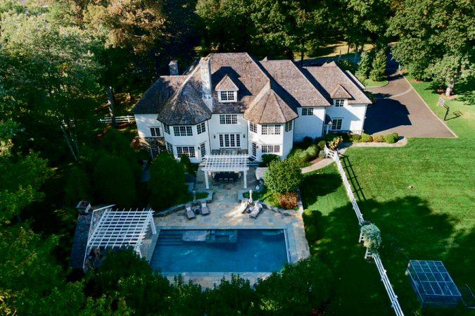 Thereare outdoor spaces to consider,aswell. “The pool housewas equipped with comfycouches andchairs, an easy turn-on fireplaceand abathroom,” Kaplan noted. “An outdoor ping-pongtable is setupall summer fora fun outdoor groupactivity. Thespa hasroom foreight people with awaterfall that flowsintothe pool.The generous flat lawn is perfectfor playingall sports.The Olympic-sized heatedpool is surrounded by 2,000 square feet of stone patiospace,including an outdoor kitchen, with acommercial gasgrill,refrigeratorand multiple inviting outdoor seatingareas.” Theaskingprice for1343 SmithRidge Road is $3.795million.