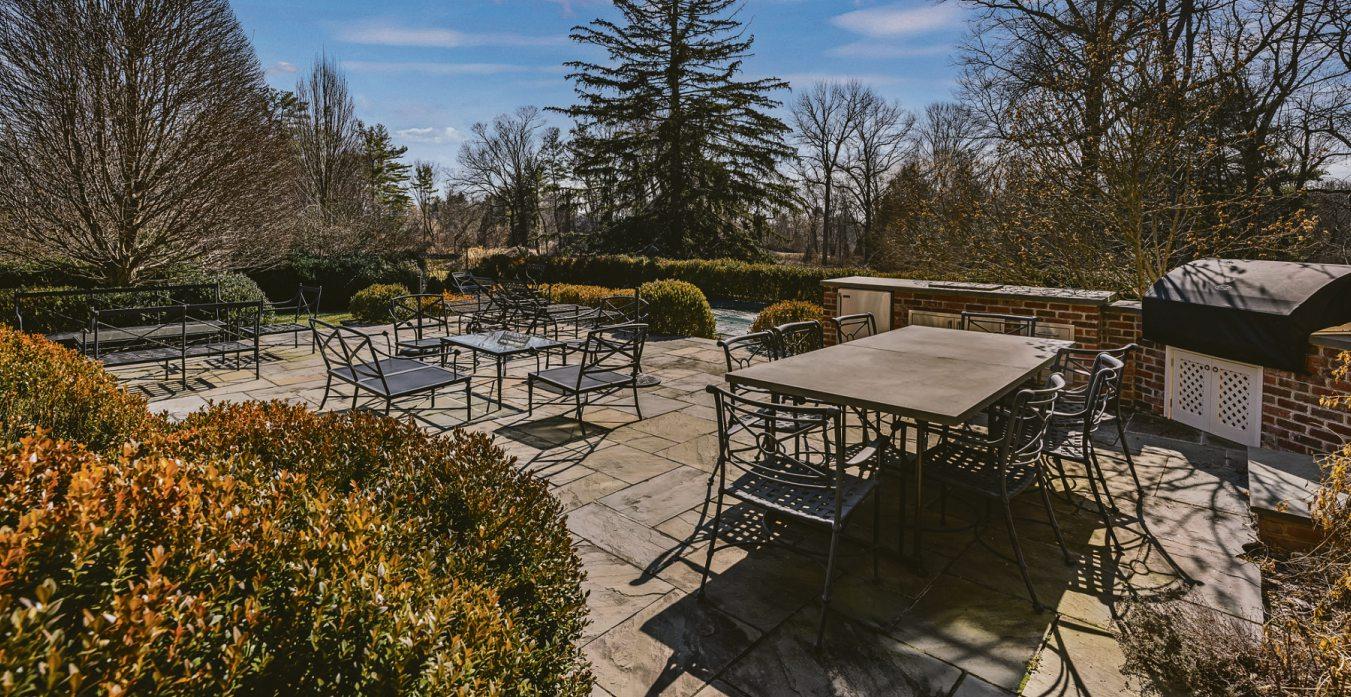 homeowners use this south-facing space for spring, summer and fallentertaining. Plus, there’saheated pool and brick-walled garden that surrounds the terrace for complete privacy.”