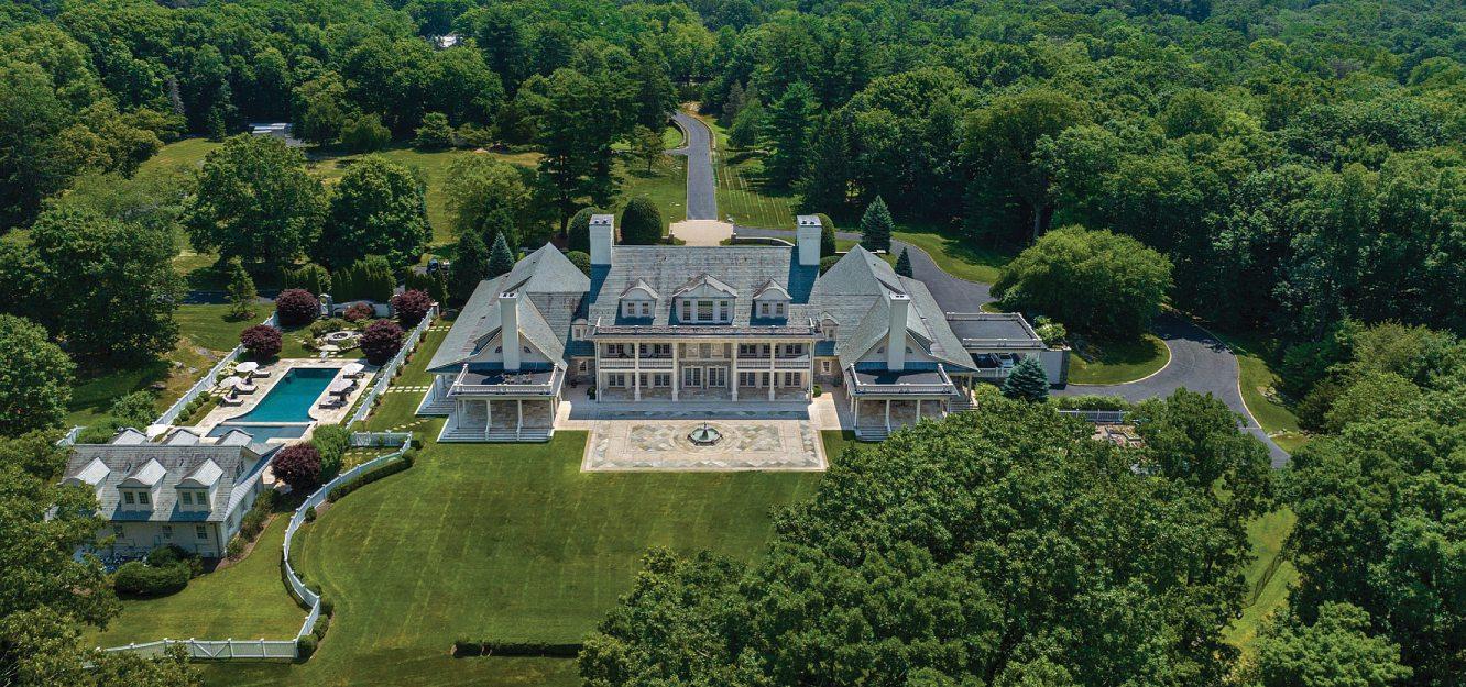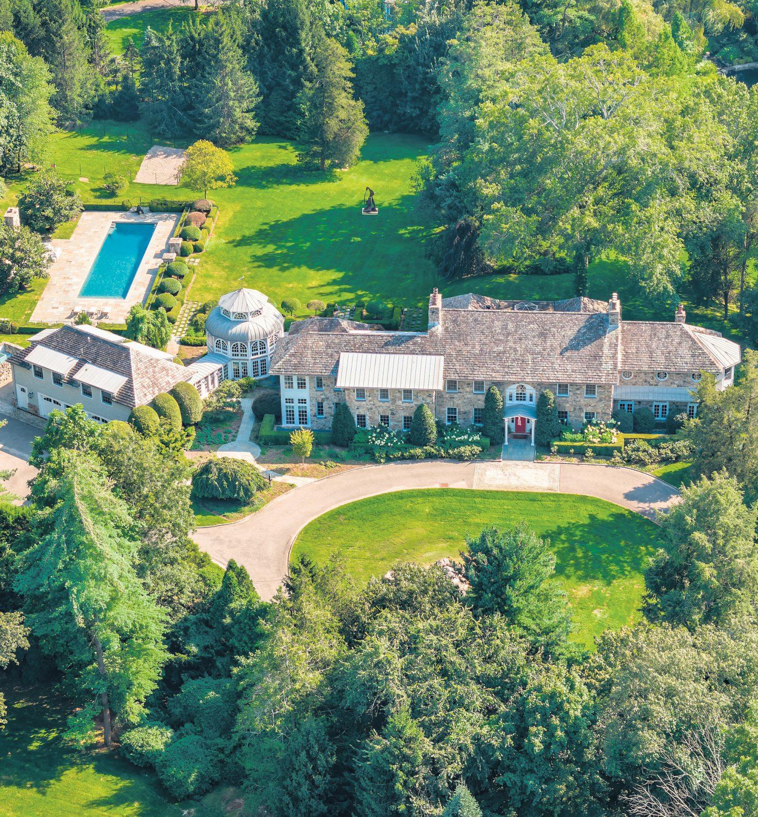 Pictured:Granoff Architects designed theseven-bedroom stone-and-clapboardGeorgianat4 Cherry BlossomLane— currently on themarketfor $8.95 million. The2.27-acre lot— whichhas awealthofamenities,including abar andlounge, gym, pool (inset above) andwinecellar/tastingroom—islistedbyRob Johnson aRealtor with BrownHarrisStevens.Photoscontributed