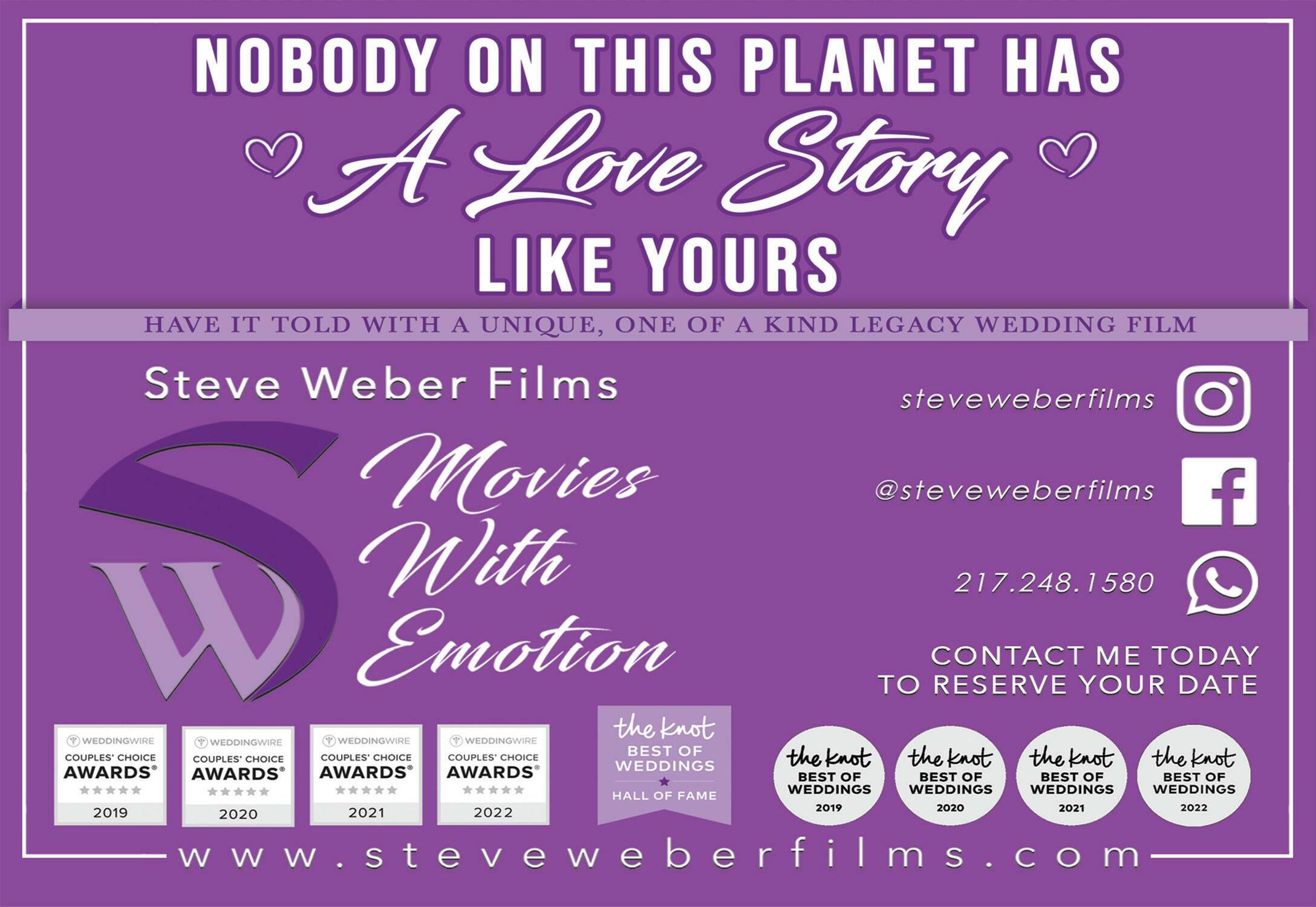 You can find out more about who I am and what I do by visiting my website www.steveweberfilms.com. There you can find videos that explain every aspect of how I work, as well as podcasts that cover topics that couples want to know. I look forward to working with you to create a wedding film you can be proud of. Contact me today.