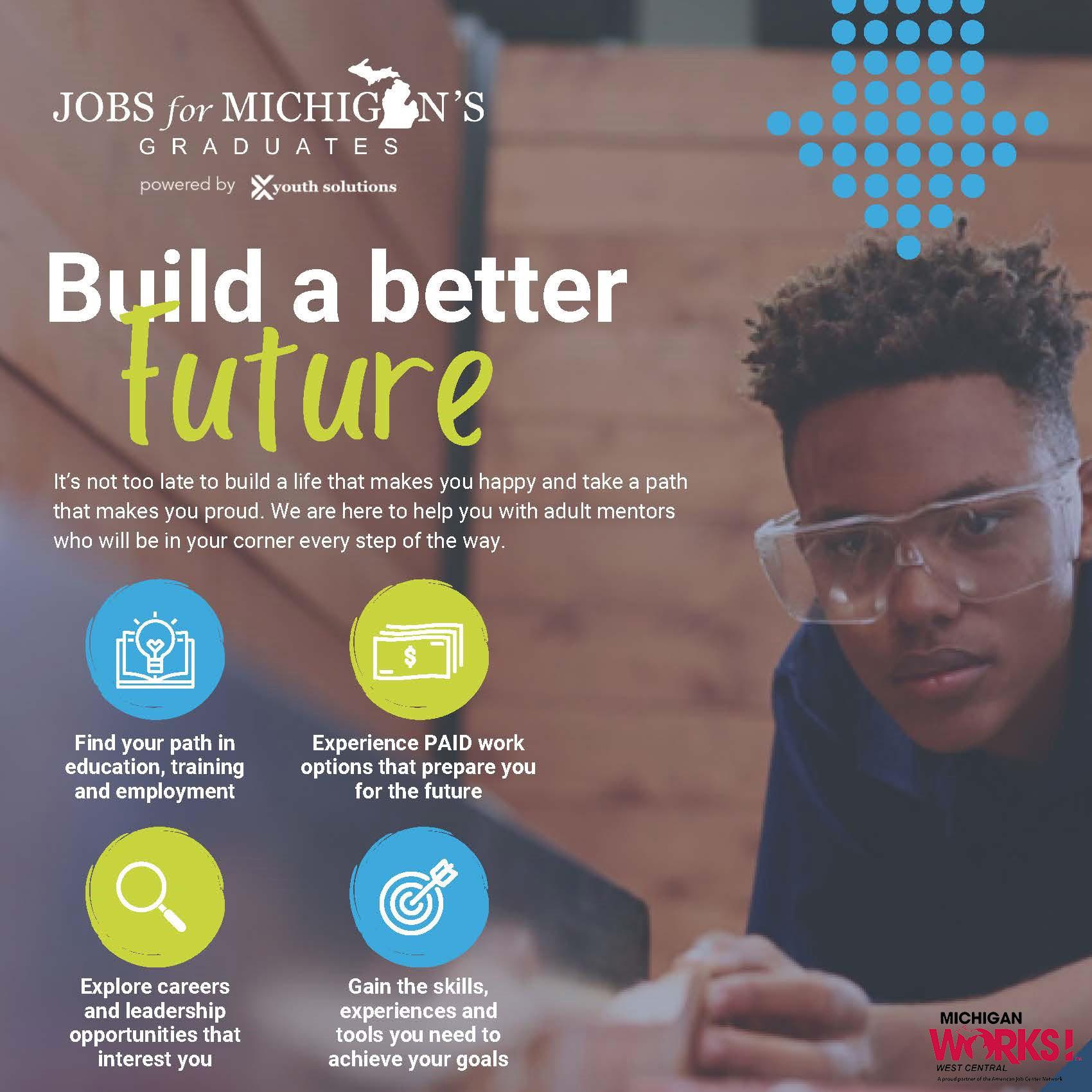 At Michigan Works! West Central, it’s our job to help those looking to advance their careers get the training they need to move into a high-wage, long-term position. Our Young Adult Services program can help you gain the skills necessary to succeed in tomorrow’s workforce. Let us help you obtain the education, training and experience you need to move your career forward!