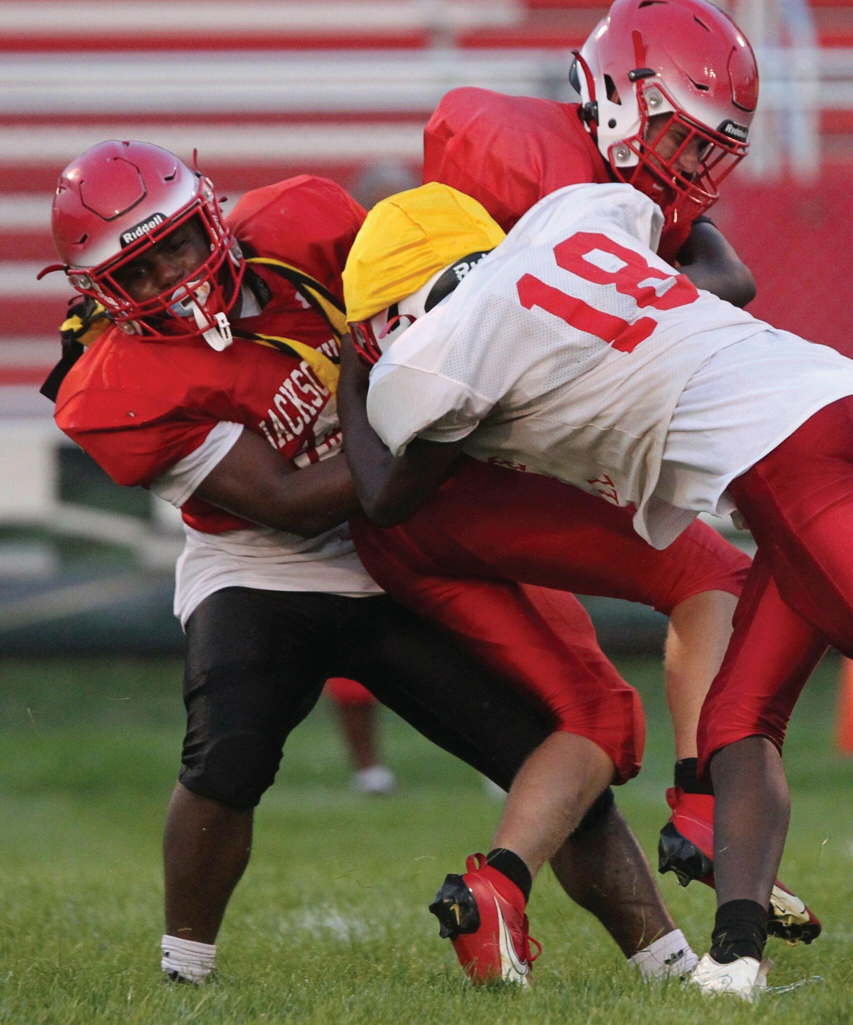 Most of the same players on the offensive line will play on the defensive line. Carrollton’s middle linebacker will be Harrelson, who started there last year and didn’t miss a game. Howard and Cox will play outside backers.