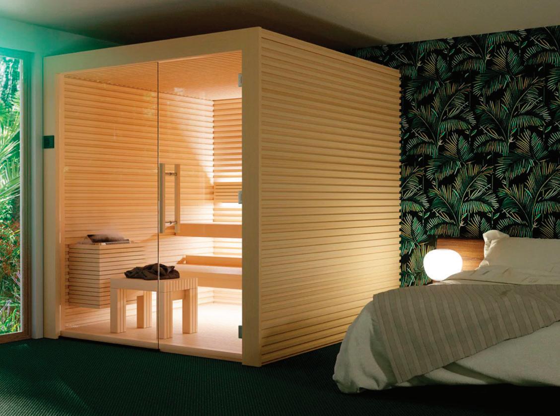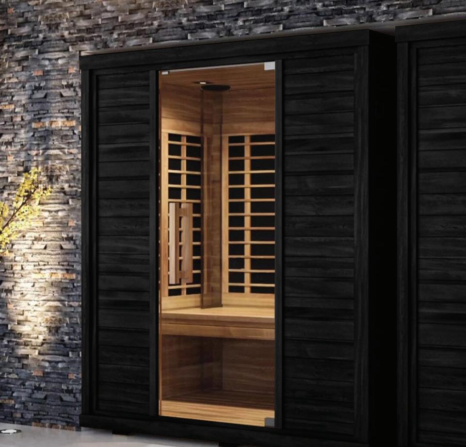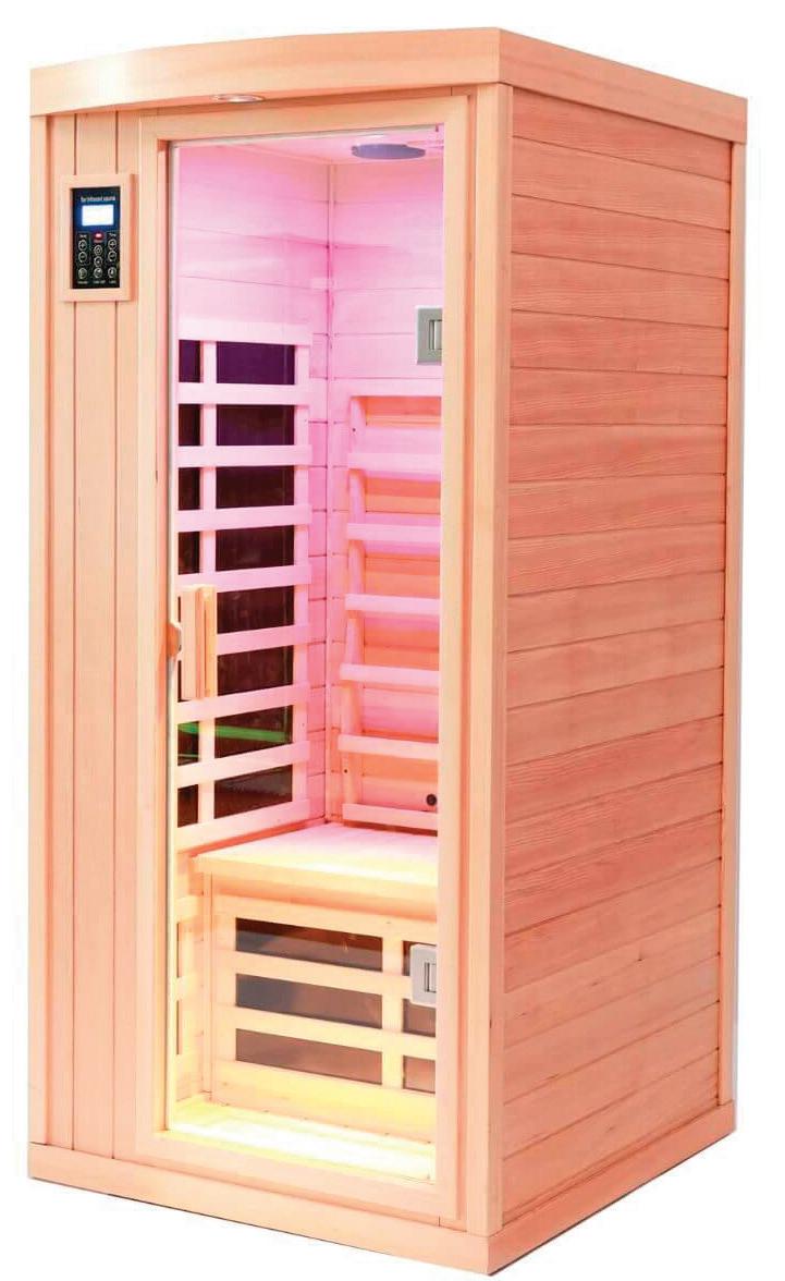 This medical-grade electric sauna boasts a built-in Bluetooth sound system, patented electromagnetic field shield technology and soothing infrared lighting. Crafted from ecocertified, kiln-dried Eucalyptus, both its highoutput heater and beautifully crafted interior invite you to relax and enjoy the heady aroma of this aromatic wood.