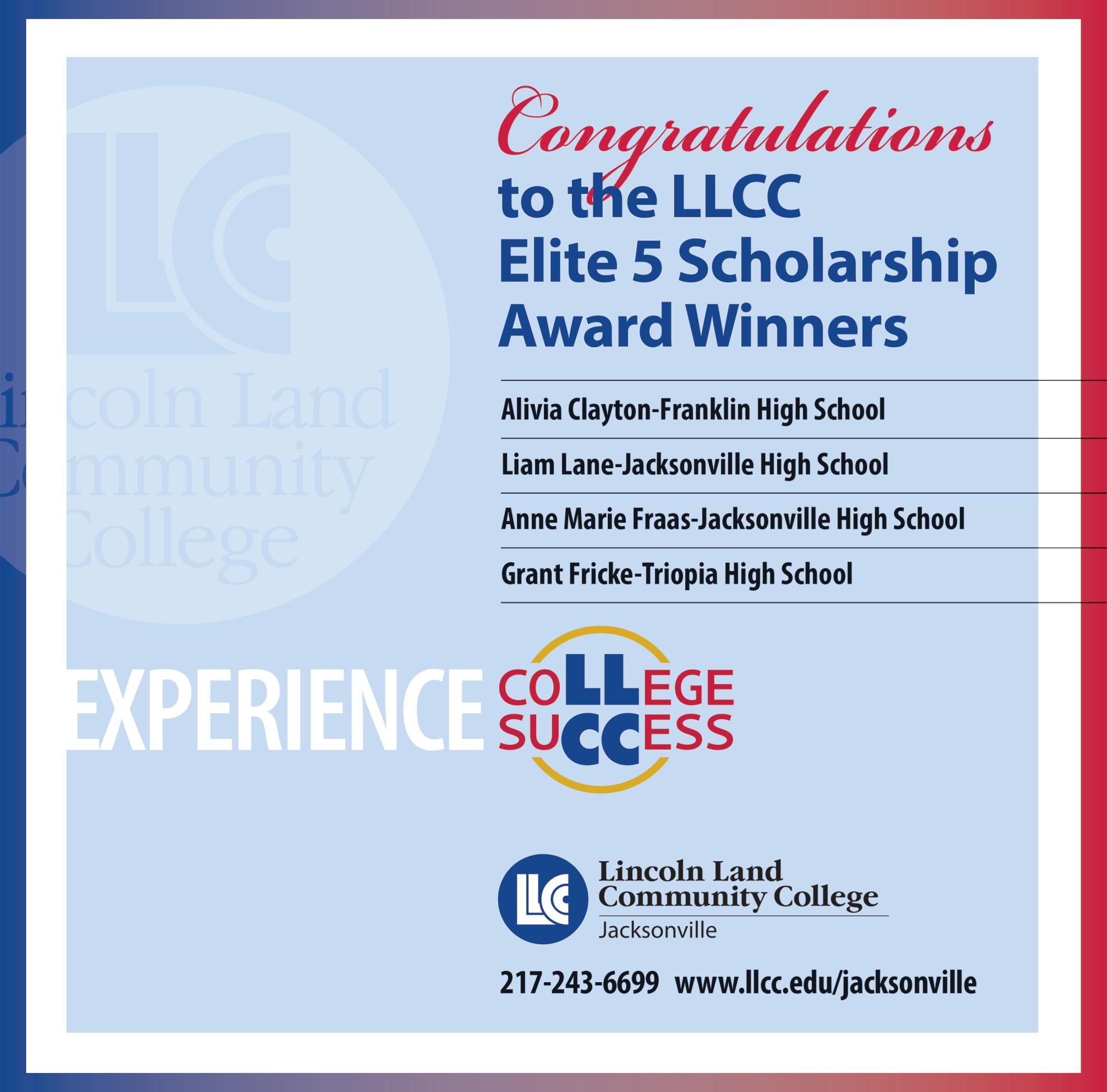 June 24, 2023 Journal-Courier Elite 5 5 Congra tula tions to all the area ELITE 5 students! From Your Local Inter net, Cable, & Phone Provider Regional Office of Education #1 Congratulates 20 2 3 Elite 5 Recipients! JACKSONVILLE HIGH SCHOOL